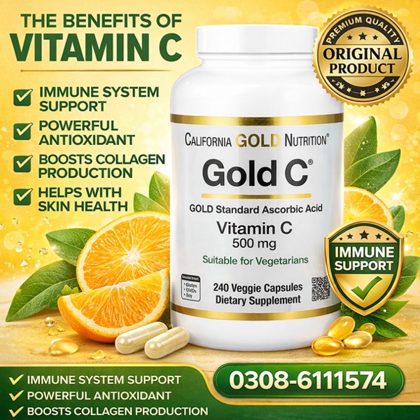 California Nutrition Gold C Capsules In Pakistan Are Formulated With High-quality Vitamin C To Support A Strong Immune System, Promote Healthy Skin, And Protect The Body From Oxidative Stress. This Premium Supplement Delivers A Powerful Dose Of Vitamin C To Help Maintain Energy Levels, Support Cardiovascular Health, And Strengthen The Body’s Natural Defenses. California Nutrition Gold C Capsules Are Ideal For Individuals Looking To Improve Daily Immunity, Enhance Skin Radiance, And Support Total Body Wellness With A Trusted Formula.