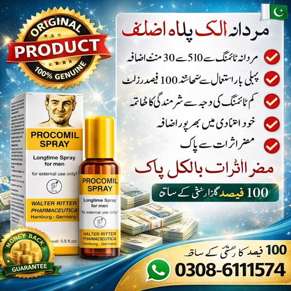 Procomil Spray In Pakistan Is A Clinically Designed Male Delay Spray That Helps Men Manage Premature Ejaculation And Enhance Sexual Performance. Its Advanced Formula Works Quickly To Desensitize The Penis Slightly, Giving Longer-lasting Erections Without Affecting Pleasure. Easy To Apply And Fast-absorbing, Procomil Spray Is Discreet, Safe, And Ideal For Men Seeking Improved Control, Confidence, And Satisfaction During Intimacy. With Consistent Use, It Supports A More Fulfilling Sexual Experience, Enhancing Both Partners’ Pleasure.