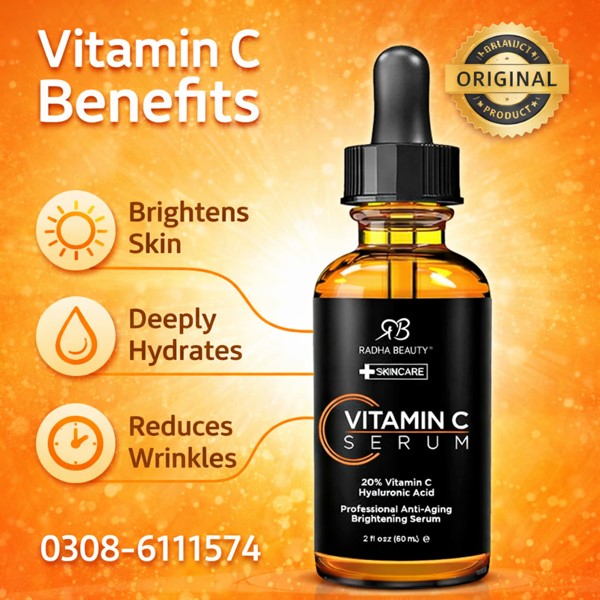 Radha Beauty Vitamin C Serum In Pakistan Is A Powerful Skincare Formula Designed To Brighten Complexion, Improve Skin Texture, And Fight Visible Signs Of Aging. Its Antioxidant-rich Formula Helps Protect Against Environmental Damage And Supports Collagen Production For Firmer, Smoother, And Healthier-looking Skin.